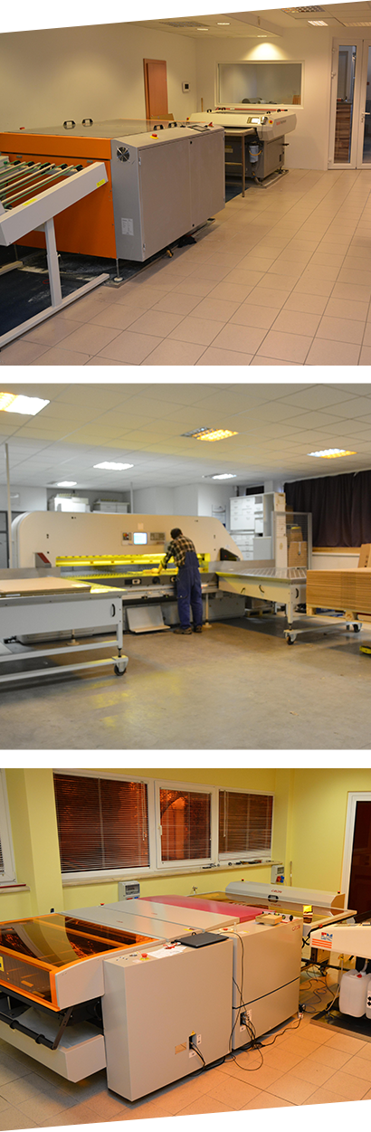 Miután Tatabányán és Budapesten is működik levilágító stúdiónk, be tudjuk mutatni az általunk forgalmazott gépeket működés közben is. Kis,- közepes,- és igény szerint nagy nyomdáknak tudunk mindkét telephelyünkön lemezeket kiváló minőségben, magas szakmai színvonalon levilágítani, hogy ezzel is elősegítsük az egyre bővülő vevőkörünk igényeinek kielégítését.